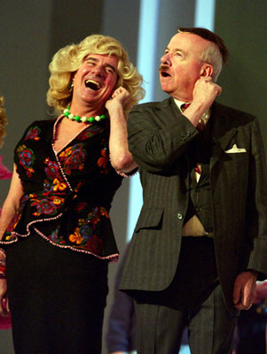 Right: On December 26, 2003, Gary Beach performed as “Mrs. Wiggins” on the CBS telecast of the Kennedy Center Honors tribute to Carol Burnett. Gary was joined by Tim Conway as Mrs. Wiggins’ bumbling boss, “Mr. Tudball.”